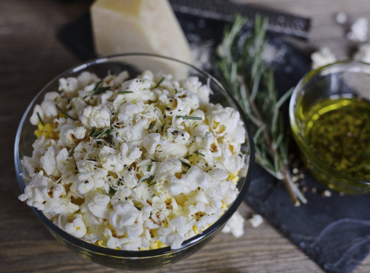 Rosemary Parmesan Popcorn from Brynn McDowell RD from The Domestic Dietitian
